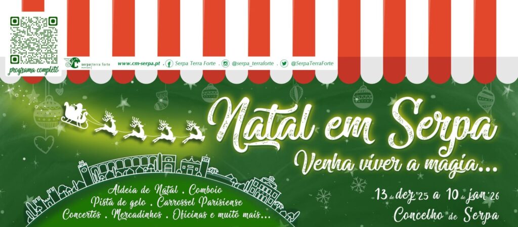 Arranca este sábado o programa Natal em Serpa. A decorrer até 10 de Janeiro, o programa levado a cabo pelo Município de Serpa, prevê um conjunto de iniciativas de dinamização da época natalícia no concelho. Concertos, oficinas, animação de rua, Mercadinhos de Natal, Desfile de Pais Natal Motard, espetáculo de fim de ano, Circuito de […]