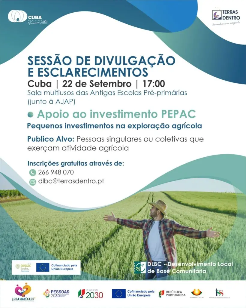 A Terras Dentro – Associação para o Desenvolvimento Integrado, no âmbito do projeto Desenvolvimento Local de Base Comunitária (DLBC) e o Município de Cuba, através do projeto Cuba Mais – CLDS 5G, promovem esta segunda-feira, uma sessão de divulgação/esclarecimento no âmbito das candidaturas abertas para apoio aos pequenos investimentos na exploração agrícola. A sessão tem […]